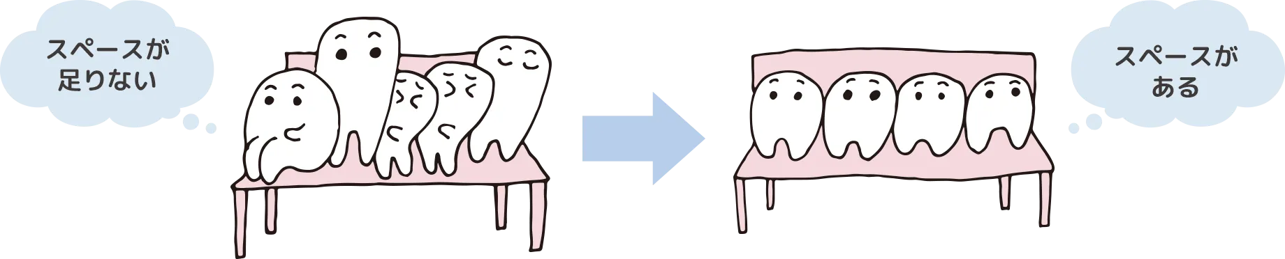 抜歯を要するような、大きな歯列の乱れを予防することができ、自然な形で整えることができます。